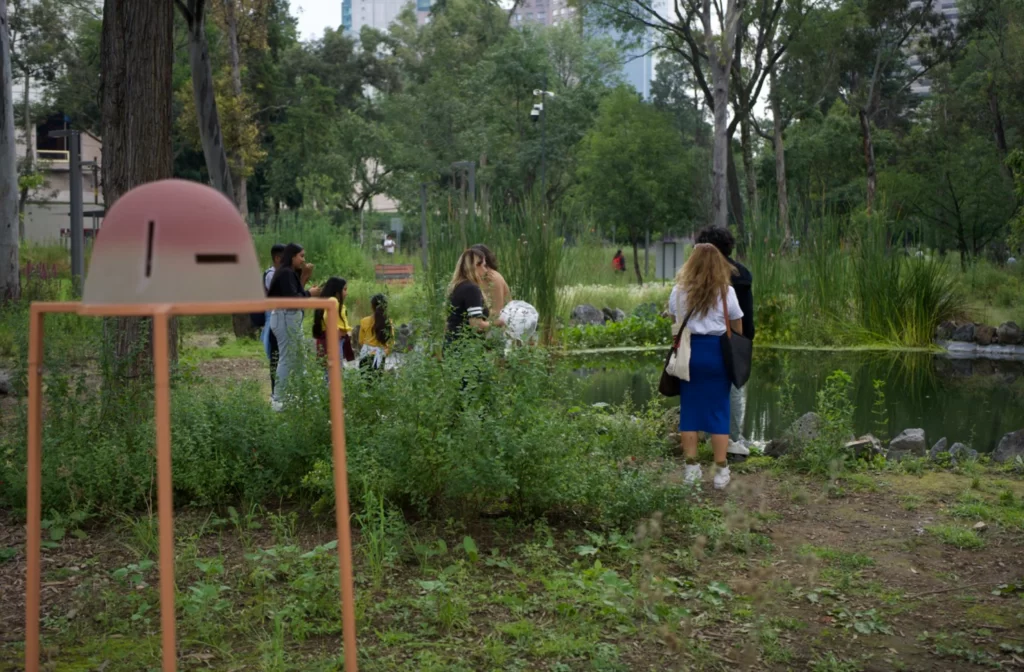 Imagen Portada: Todo está en movimiento y nosotres también, dispositivos de escucha, en el festival Murmuro, en el jardín escénico en el Bosque de Chapultepec, 2024. Foto: Dylan Doehner.