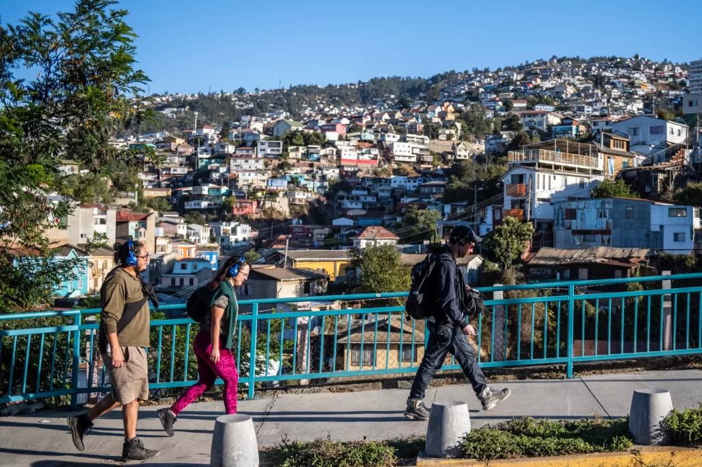 Caminar, facilitado por los numerosos funiculares de la ciudad, es la forma más directa e íntima de experimentar este entramado. Las calles densamente pobladas y las estructuras superpuestas forman una intersección compleja de espacios sonoros, desde los mercados bulliciosos de la Avenida Argentina hasta los pasajes estrechos y silenciosos del Cerro Concepción.